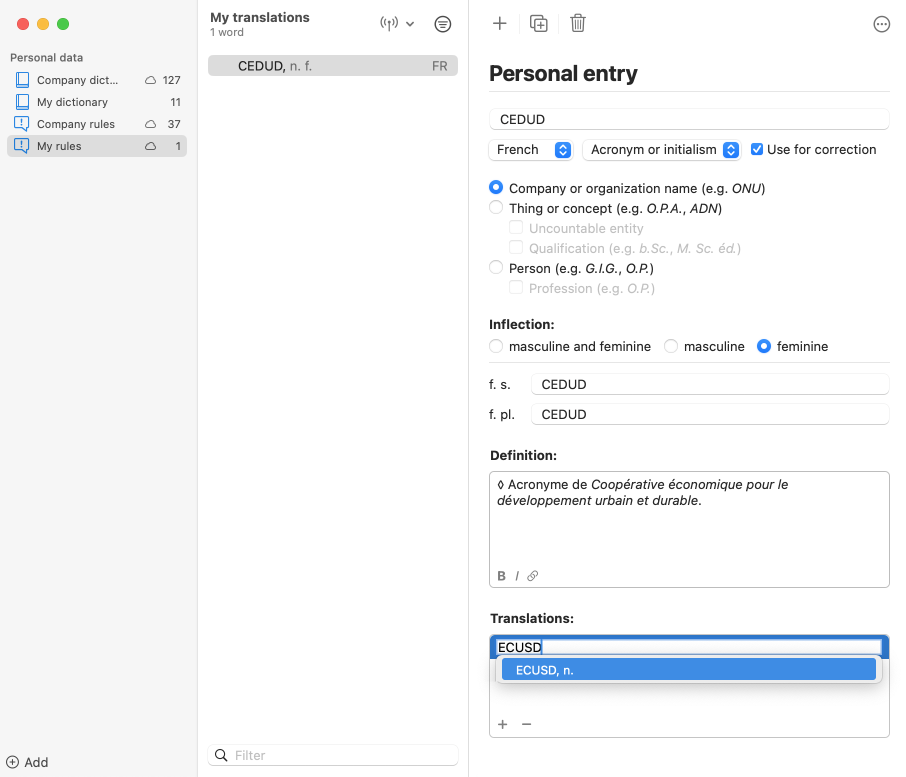 Not only can you add your own words (and your clients’ words!) to your personal dictionaries, but you can also include their translations.